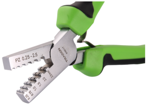 Érvéghüvely présszerszám 0,25–2,5 mm² keresztmetszetű szigetelt, szigeteletlen és iker érvéghüvelyek préselésére szolgál. Kompakt méretének és ergonomikus kialakításának köszönhetően ideális választás finommechanikai munkákhoz, precíziós szereléshez vagy szűk helyeken történő alkalmazáshoz. A trapéz formájú présfelület megbízható, stabil kötést biztosít, míg a racsnis mechanizmus garantálja a teljes préselési ciklust. Könnyű súlya és kényelmes markolata hosszabb munkavégzés esetén is komfortos használatot biztosít.